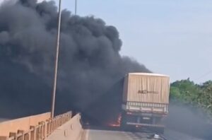Colisão entre três carretas provoca incêndio e interdição total da BR-364 em Rondonópolis outubro 30, 2025
