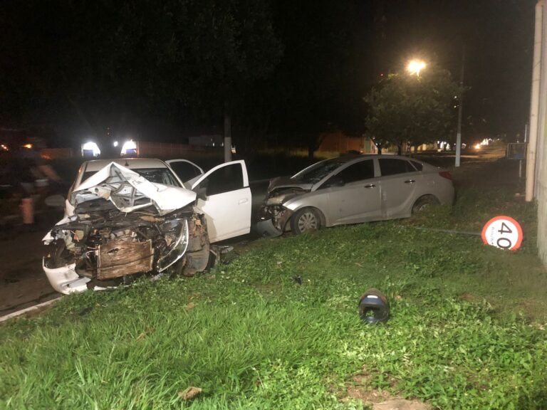 O acidente de alto impacto envolveu um veículo HB-20 e um Chevrolet Ônix branco.