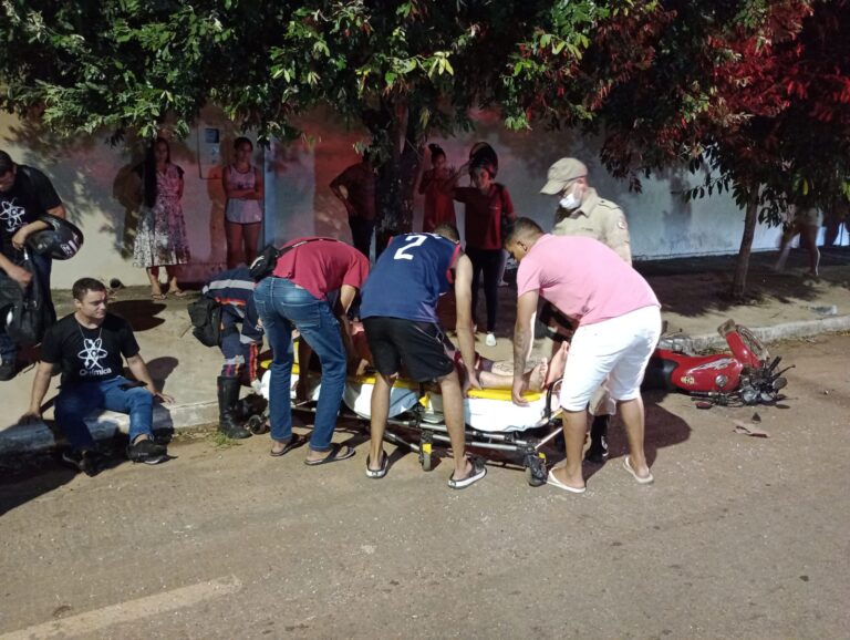 Duas motocicletas se chocam em cruzamento na região central de Rondonópolis deixando dois feridos