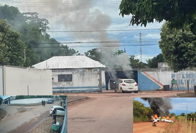 Segundo informações, o grupo criminoso queimou veículos na estrada para impedir a passagem das forças de segurança e também invadiu o quartel da Polícia Militar