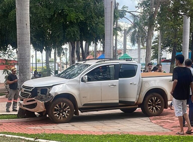 Uma caminhonete modelo Chevrolet S-10 de cor prata, “invadiu” as dependências da Praça Brasil em Rondonópolis, no início da tarde desta quarta-feira (05).