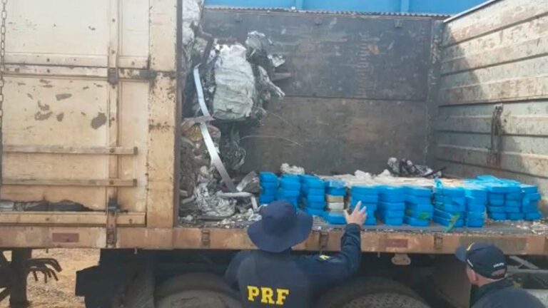 A Polícia Rodoviária Federal (PRF) apreendeu 182,7 Kg de cocaína e prendeu o homem que transportava a droga, no final da tarde desta sexta-feira (08), em Paranaíba (MS). A equipe de policiais rodoviários federais abordou, no km 90 da BR-158, o veículo Scania R124, de placas de São José dos Quatro Marcos (MT), atrelado a um semirreboque, conduzido por um homem, de 40 anos, e carregado com sucata de ferro.
