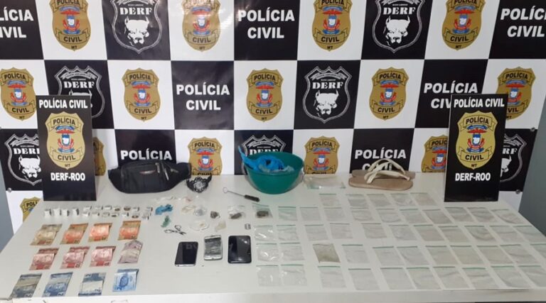 Nesta terça-feira (10), no Bairro Magnólia, em Rondonópolis, os investigadores da Delegacia Especializada de Roubos e Furtos (DERF) apreenderam maconha, cocaína, apetrechos para o tráfico e dinheiro em residência.