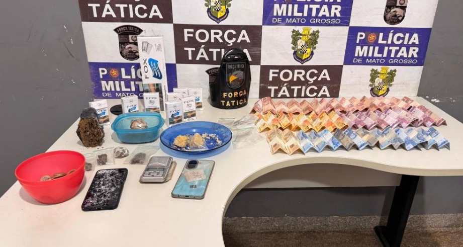 Dentro da residência, foram apreendidos meio tablete de maconha, uma balança de precisão, R$ 555 em dinheiro, além de 10 sacos zip lock para embalagem dos entorpecentes e várias carteiras de cigarro.