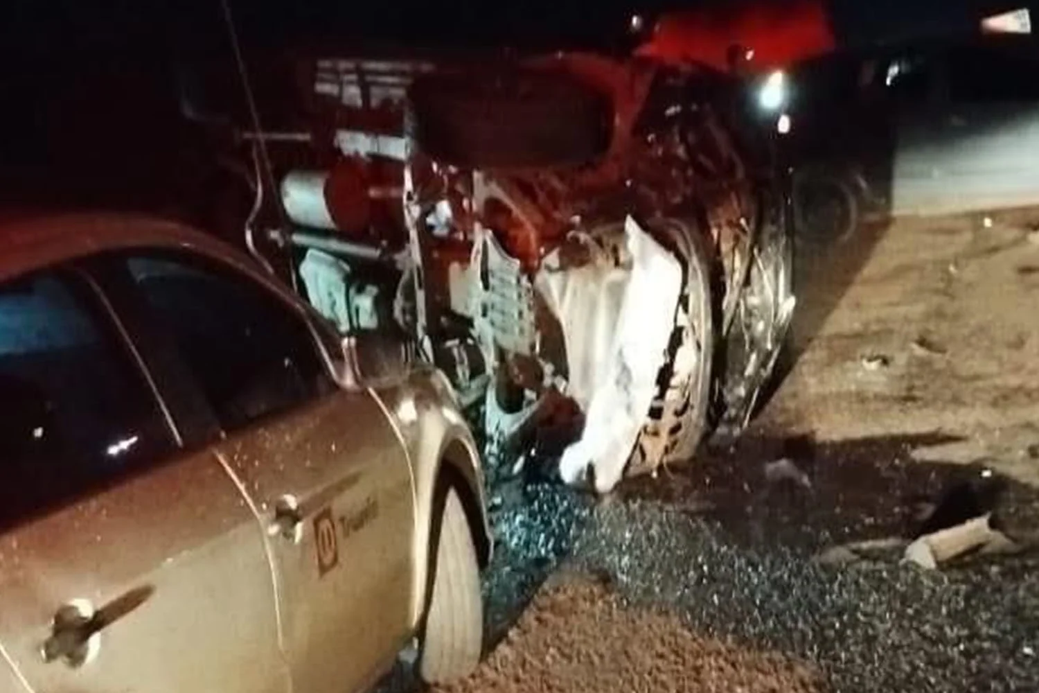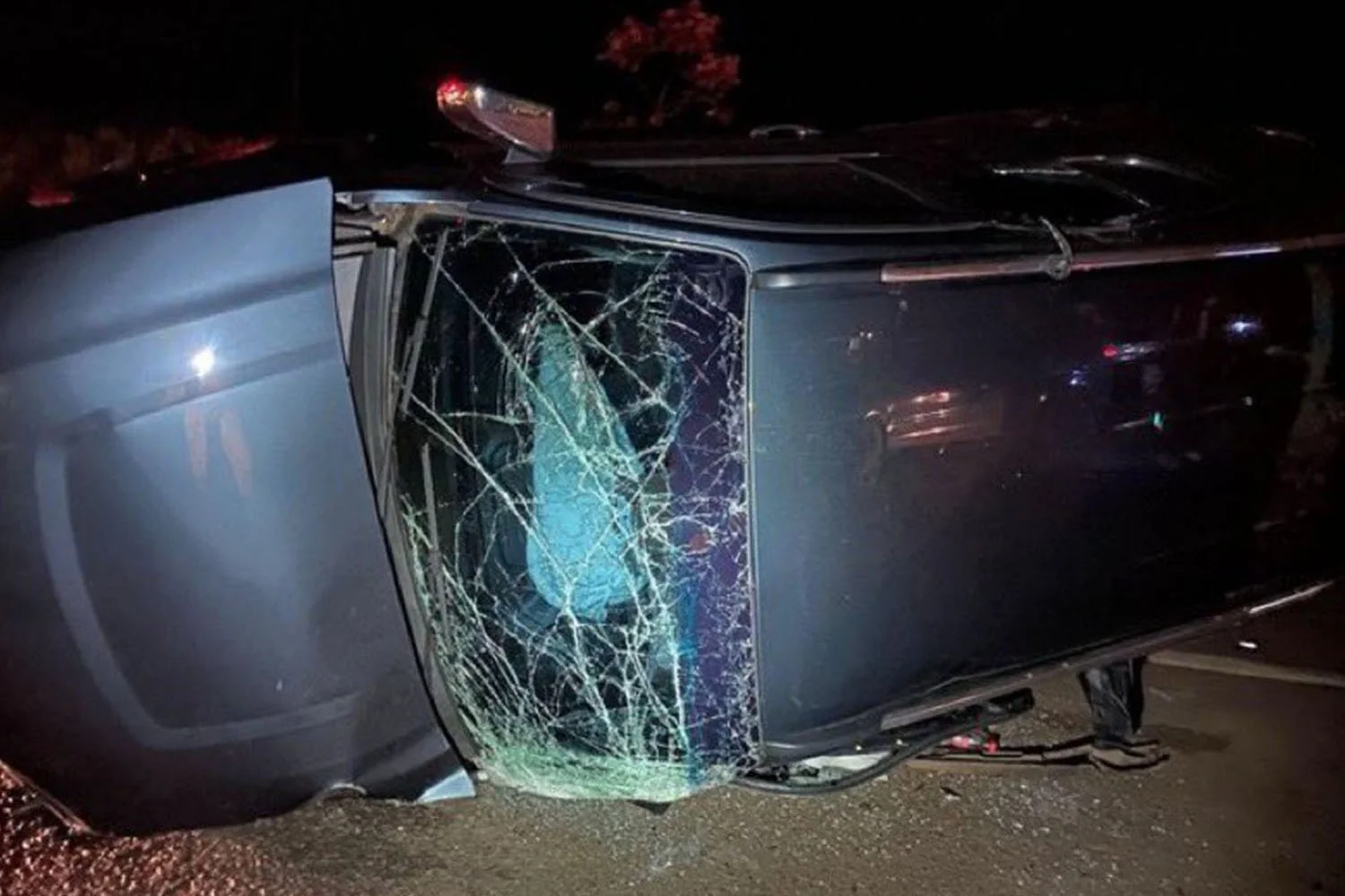 As imagens mostrama camionete que o cantor estava e um outro veículo envolvido no acidente. Com o impacto, a camionete capotou no trevo que dá acesso ao condomínio Enceada, na BR-153.