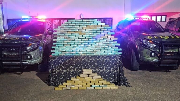 Os policiais faziam patrulhamento pela rodovia federal por volta das 19h quando avistaram o veículo e realizaram a abordagem. Na picape, haviam alguns galões de combustível e, após verificação, os militares descobriram que havia 185 tabletes de pasta base de cocaína e cinco de maconha no interior.