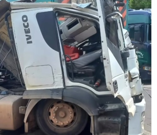 O acidente envolveu dois veículos de carga. O condutor de um caminhão-tanque, identificado como Adelson, ficou preso nas ferragens, enquanto combustível vazava na pista, representando um risco. Diante da situação, os policiais prestaram socorro imediato, auxiliando na retirada do motorista para evitar maiores danos à sua integridade.