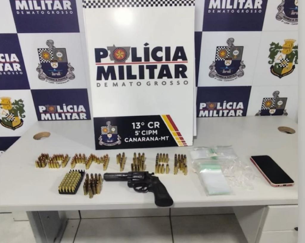 Policiais militares do 16º Batalhão prenderam um homem, de 46 anos, nesta quarta-feira (24.9), suspeito por ameaça e porte ilegal de arma de fogo, em Canarana (606 km de Cuiabá). As equipes apreenderam um revólver e 157 munições de calibres diversos. Uma mulher, de 30 anos, denunciou o ex-namorado que não aceitava o fim do relacionamento e que já foi agredida em outras situações.