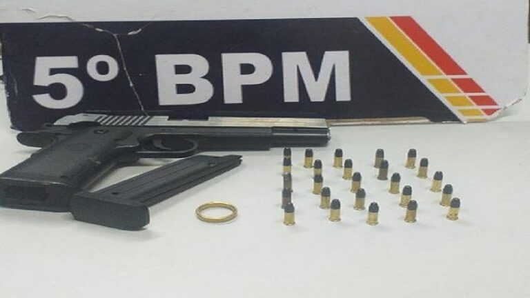 Na madrugada desta segunda-feira(09), em Rondonópolis, a PM apreendeu em flagrante um homem, de 25 anos , pelos crimes de porte ilegal de arma e violência doméstica. O suspeito foi apreendido com um simulacro de arma de fogo com 25 munições.