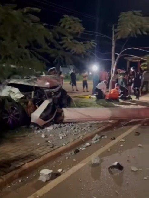 Com a força do impacto, o poste foi completamente destruído e caiu no canteiro central da rodovia. Equipes do Serviço de Atendimento Móvel de Urgência (Samu) prestaram os primeiros socorros às vítimas, que foram encaminhadas ao hospital conscientes.