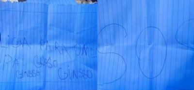Segundo a Polícia Militar, o alerta partiu do gerente de uma empresa de construção civil, que encontrou o bilhete com os dizeres “liga para o meu pai” e “SOS”, jogado por cima do muro de uma das residências usadas por funcionários da empresa.