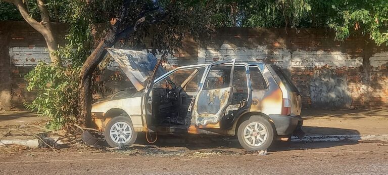 Os bombeiros foram acionados e atenderam a ocorrência, porém o fogo consumiu o automóvel.