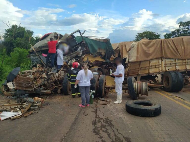 Conforme divulgado, um homem morreu após ficar preso entre as ferragens no acidente que envolveu duas carretas, marca e modelos não informados.