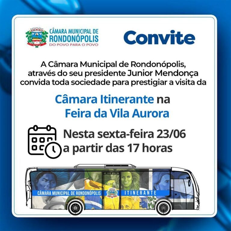 Lembrando que o cronograma do “Ônibus Itinerante” da Câmara Municipal de Rondonópolis nas feiras livres, será montado nos próximos dias e amplamente divulgado. A população pode ainda ter acesso a essas informações junto ao site oficial da Câmara www.rondonopolis.mt.leg.br
