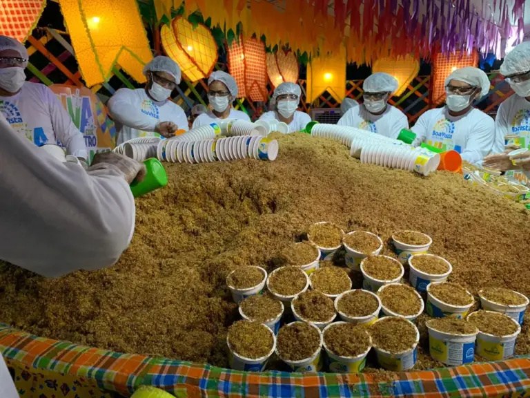 Com 1.131 kg de carne seca e farinha amarela e, batendo o próprio recorde, a “maior paçoca do mundo” foi distribuída gratuitamente para a população nesse sábado (18), última noite do arraial Boa Vista Junina 2022.