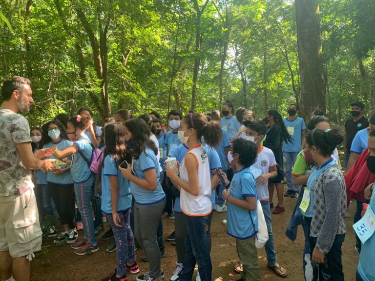 Em parceria com o Juizado Volante Ambiental (Juvam), Universidade Federal de Rondonópolis (UFR) e da Polícia Ambiental, a Semma reuniu um grupo de cerca de 80 alunos da Escola Municipal Edivaldo Zuliani Belo para uma manhã com muito conhecimento sobre o meio ambiente por meio do contato direto com a natureza no Horto Florestal de Rondonópolis.