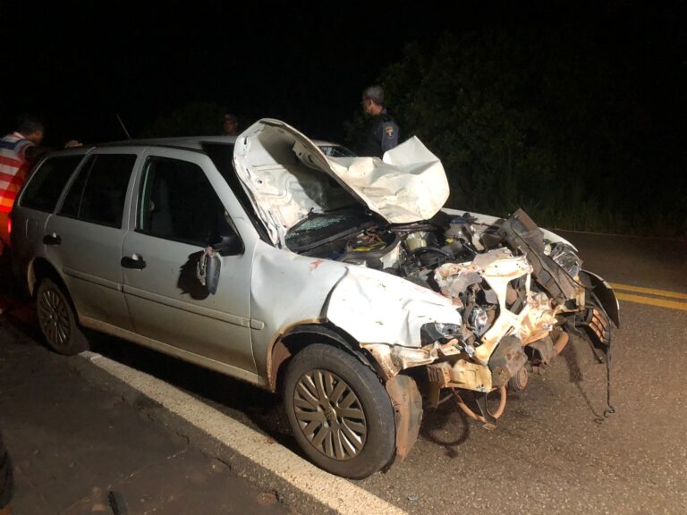 Um veículo modelo Parati ficou destruído na noite desta sexta-feira (27) na rodovia estadual MT 270, trecho entre Rondonópolis e São José do povo.